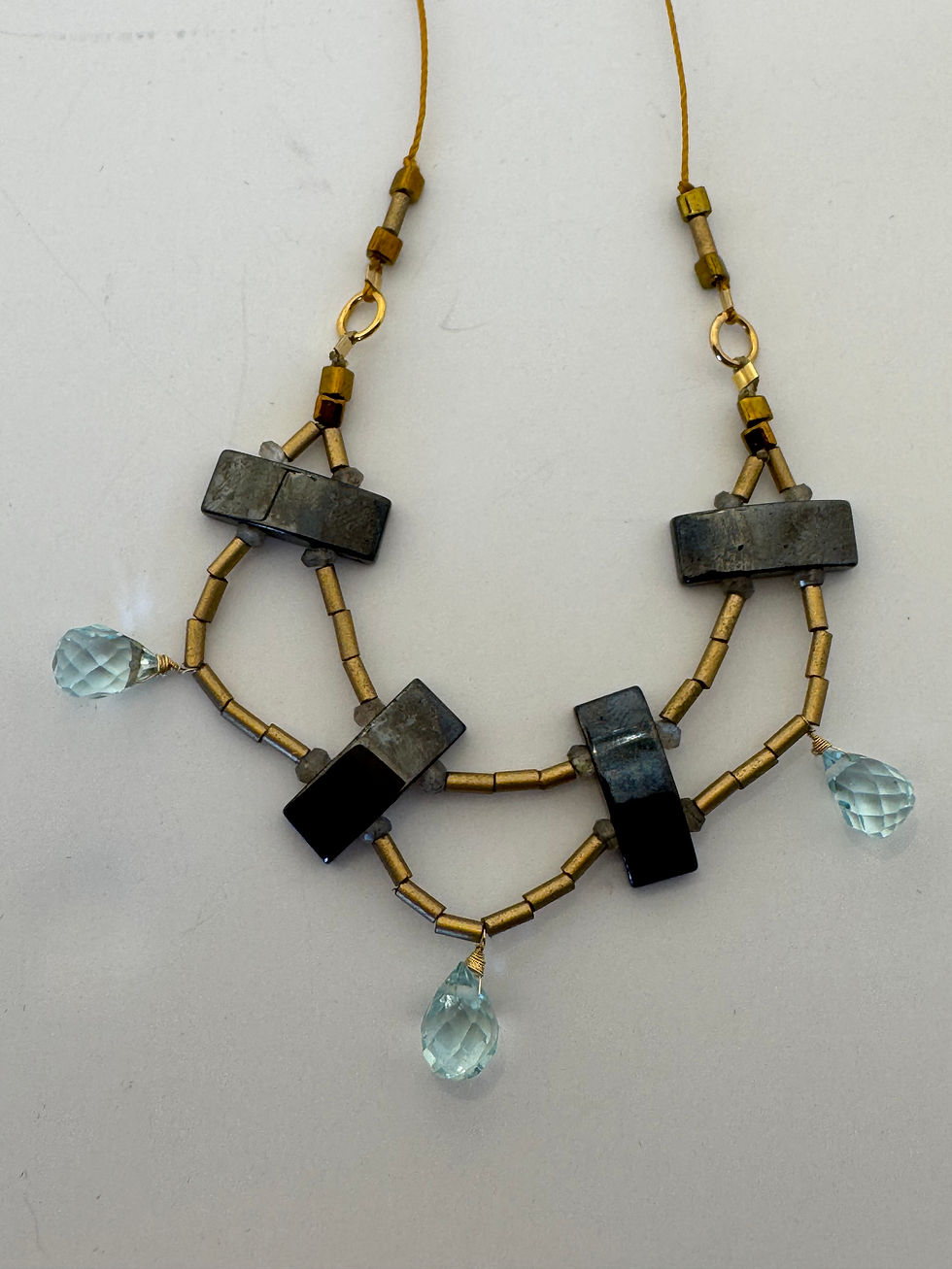 Aquamarine and Hematite Festoon Necklace