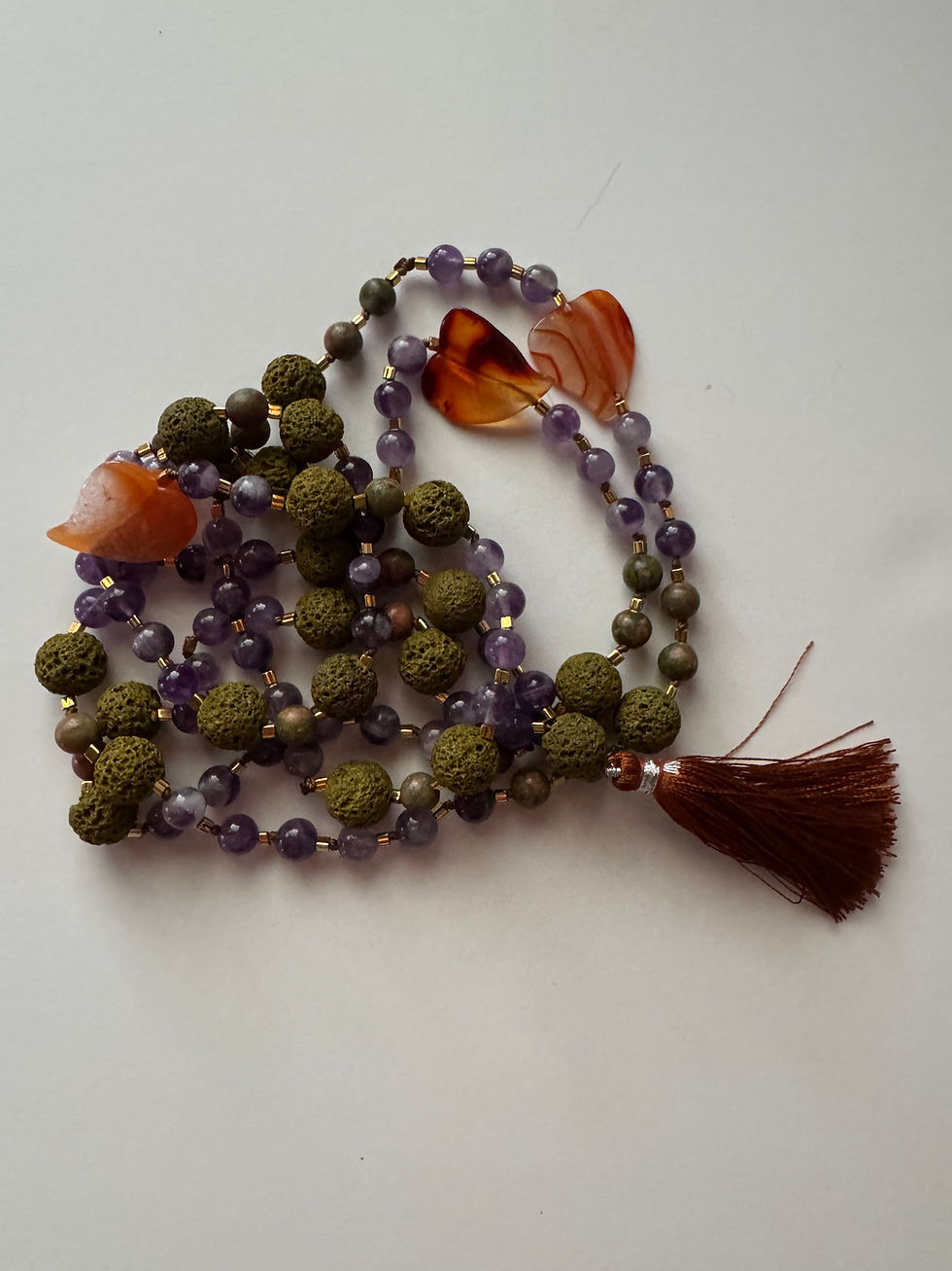 Carnelian Leaves, Agate, Jasper, Copper Crystals, Unakite Mala