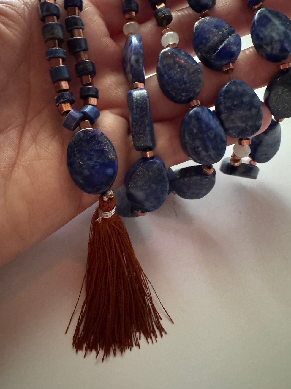 Pearl Mala -Chalcedony, Czech Crystal, Black Tassel