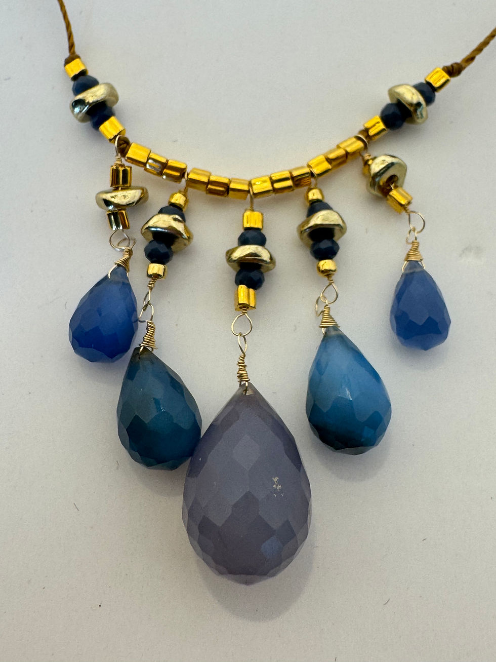 Lapis and Turquoise 7-Drop Necklace — Blue Chalcedony & Labradorite